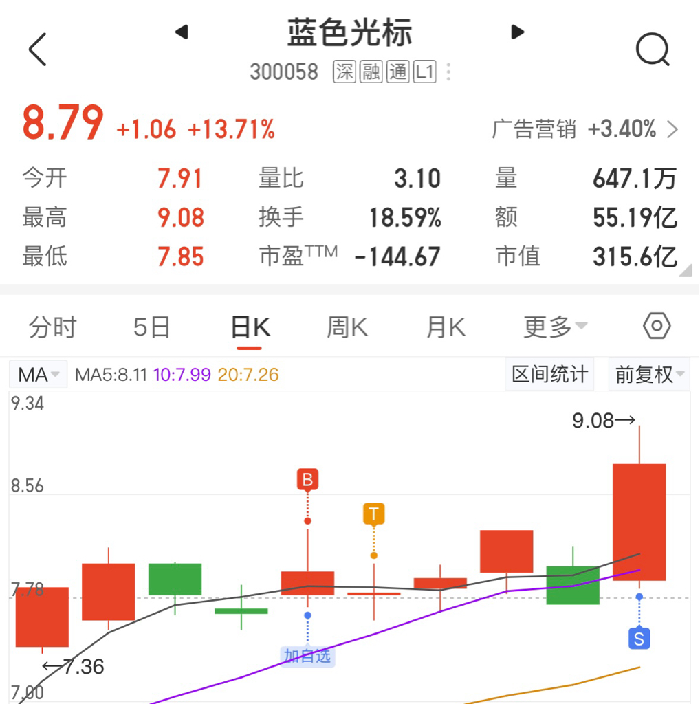 $蓝色光标(SZ300058)$ 感谢主力大哥,小弟先下车了,有缘再见