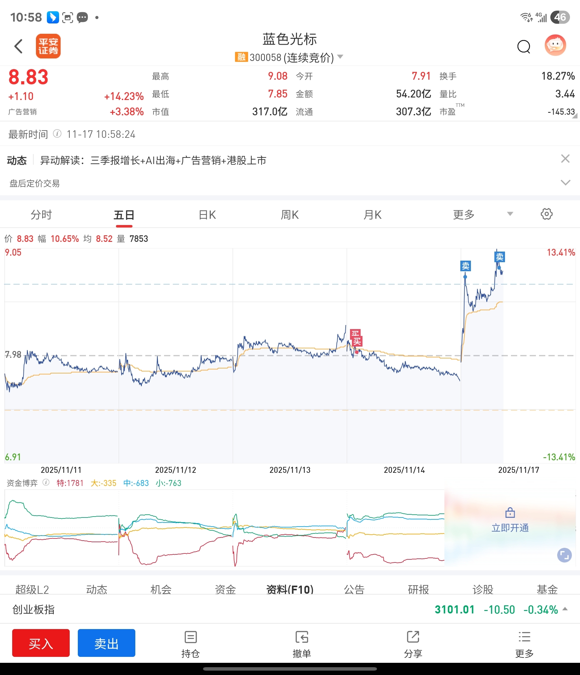 $蓝色光标(SZ300058)$ 都拉15了不涨停,先走了,留下的发财