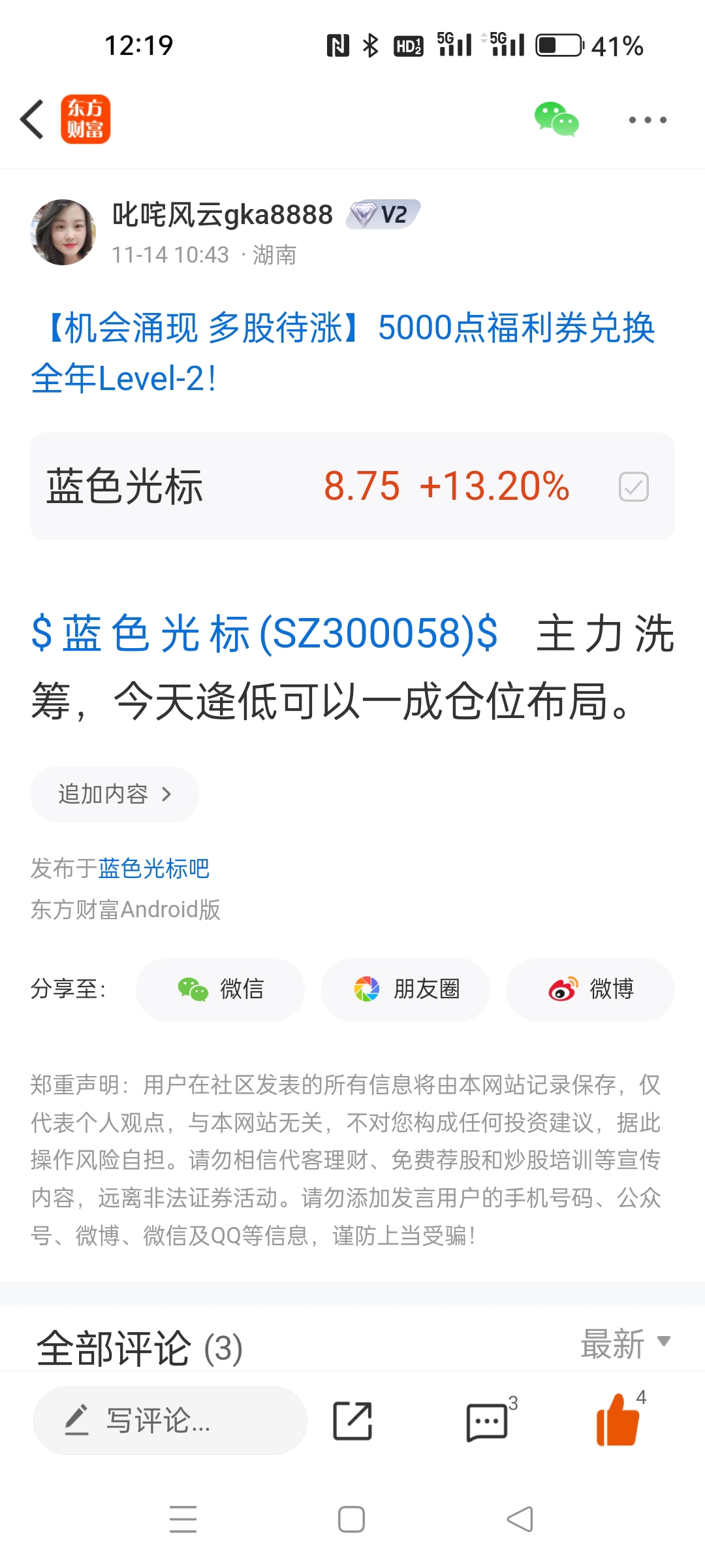 $蓝色光标(SZ300058)$ 听我提示买入的粉丝今天吃肉。
