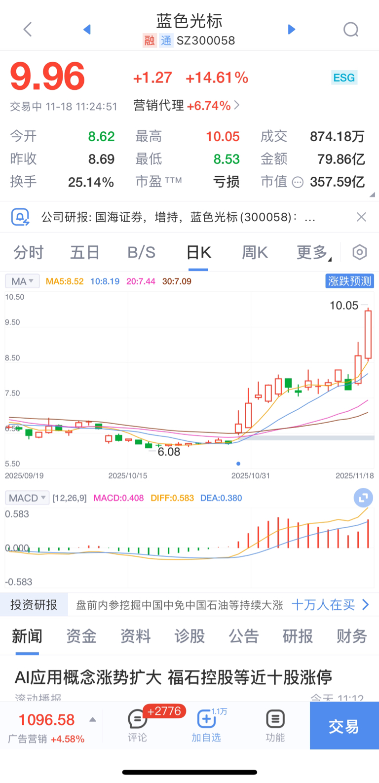 $蓝色光标(SZ300058)$ 目前14个多点了,大家记得高位撤,别贪。。。。。。。。。