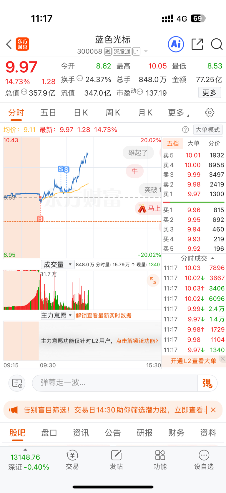 $蓝色光标(SZ300058)$ 踢飞了 标哥