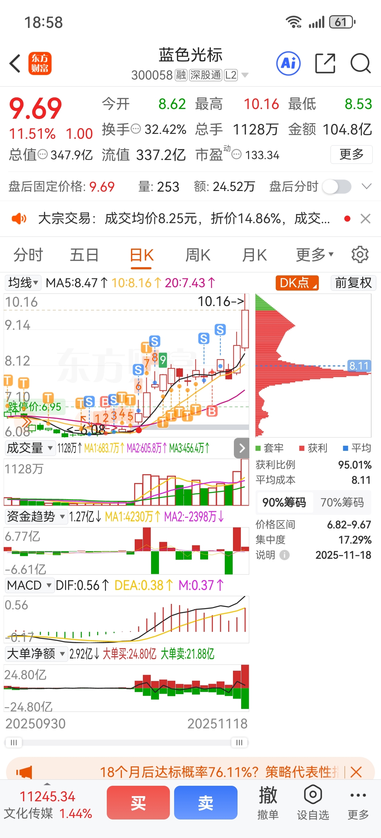 $蓝色光标(SZ300058)$ 还真是躲过了下跌也错过了上涨,想再买需要勇气!