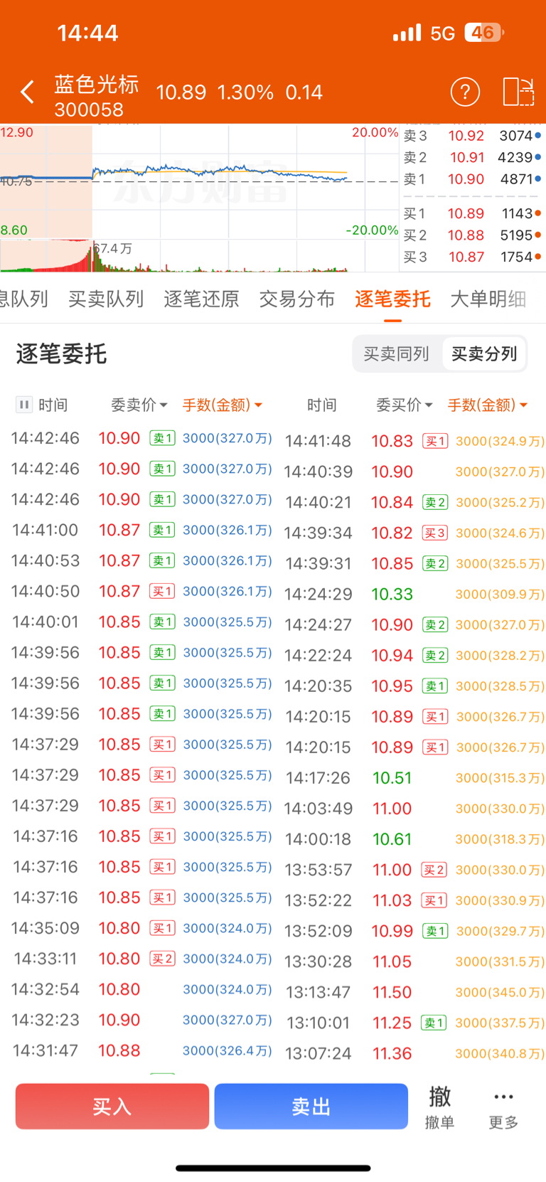 $蓝色光标(SZ300058)$ 这个3000手从早上砸到晚上,就没停过