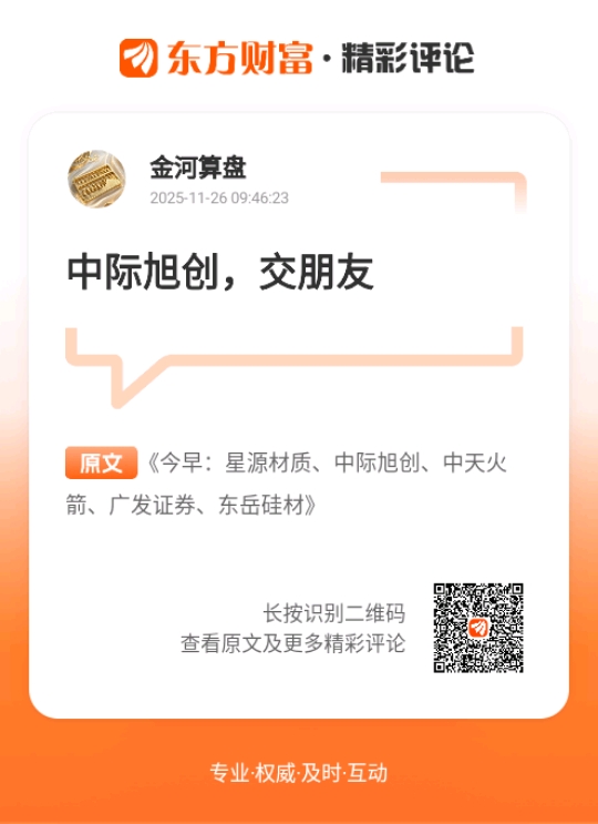 中天火箭,增雨防雹火箭 、探空火箭 、小型制导火箭 、炭/炭热场材料 、固体火箭发动机耐烧蚀组件 、智能计重系统。机构研报指出2026年军工行业迎来"十四五"尾单集中交付与"十五五"新规划启动的双轮驱动,订单确定性显著增强。军贸加速推动成为行业第二增长曲线,体系化出口打开高端市场增量空间。在低位出现首板涨停,并突破所以均线,短线走强明显,结合军工成为热点,有一定持续性,可以观察。昨天平开,金哥分享交朋友,盘中冲高回落微涨收盘,相对军工板块下跌来说,中天火箭还能红盘报收是比较强势的,今天有机会见好就收。军工股后市不宜再追高。