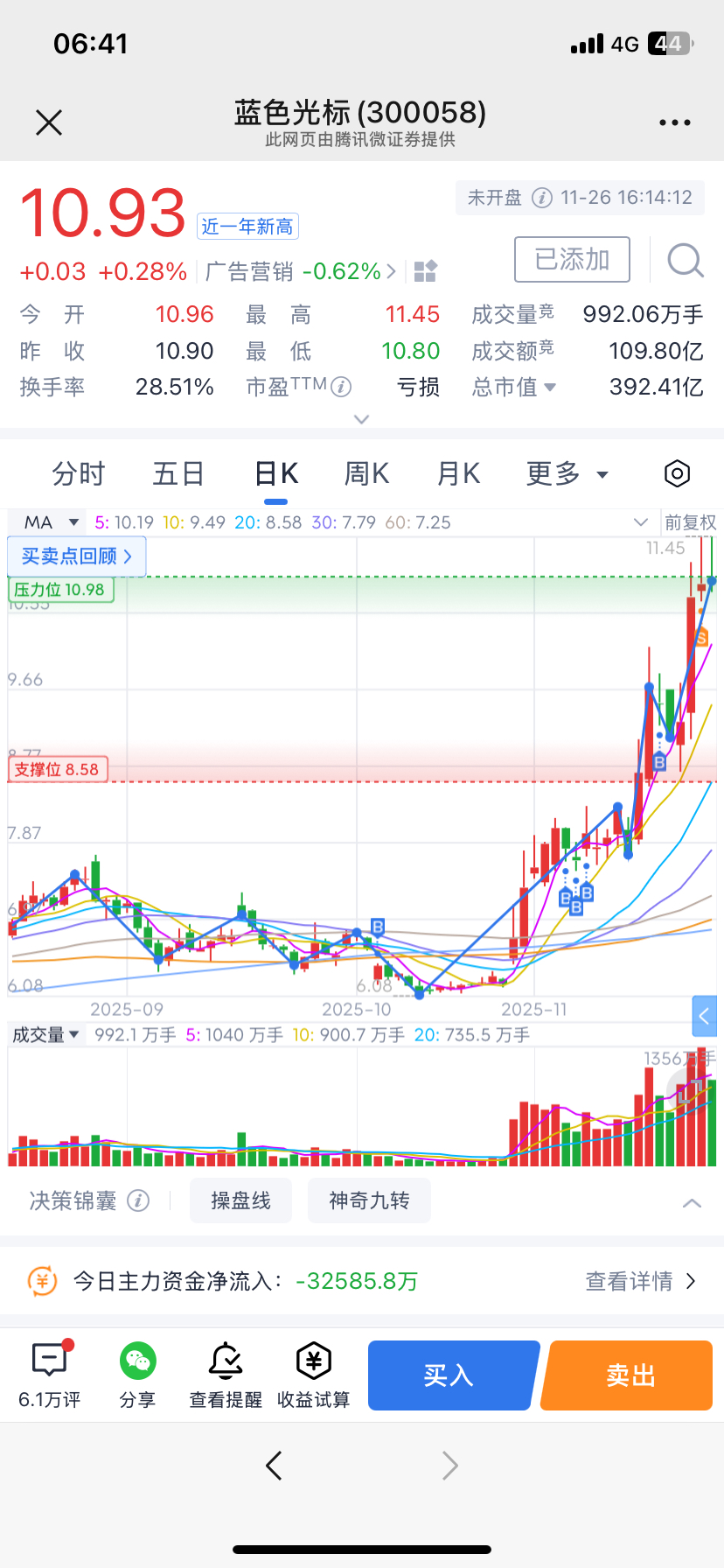 $蓝色光标(SZ300058)$ 在等待补仓的机会,看好上20