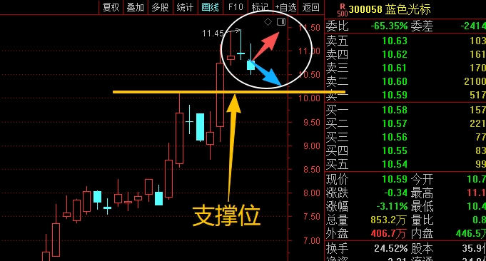 $蓝色光标(SZ300058)$ 这几天高位盘整,今天略微回落有点小头部的意思,接下来主要看脚底横线,也就是上周前高位置10.16元的支撑情况,能稳住问题不大,但有效跌破就要注意回落风险,需要控制仓位应对。