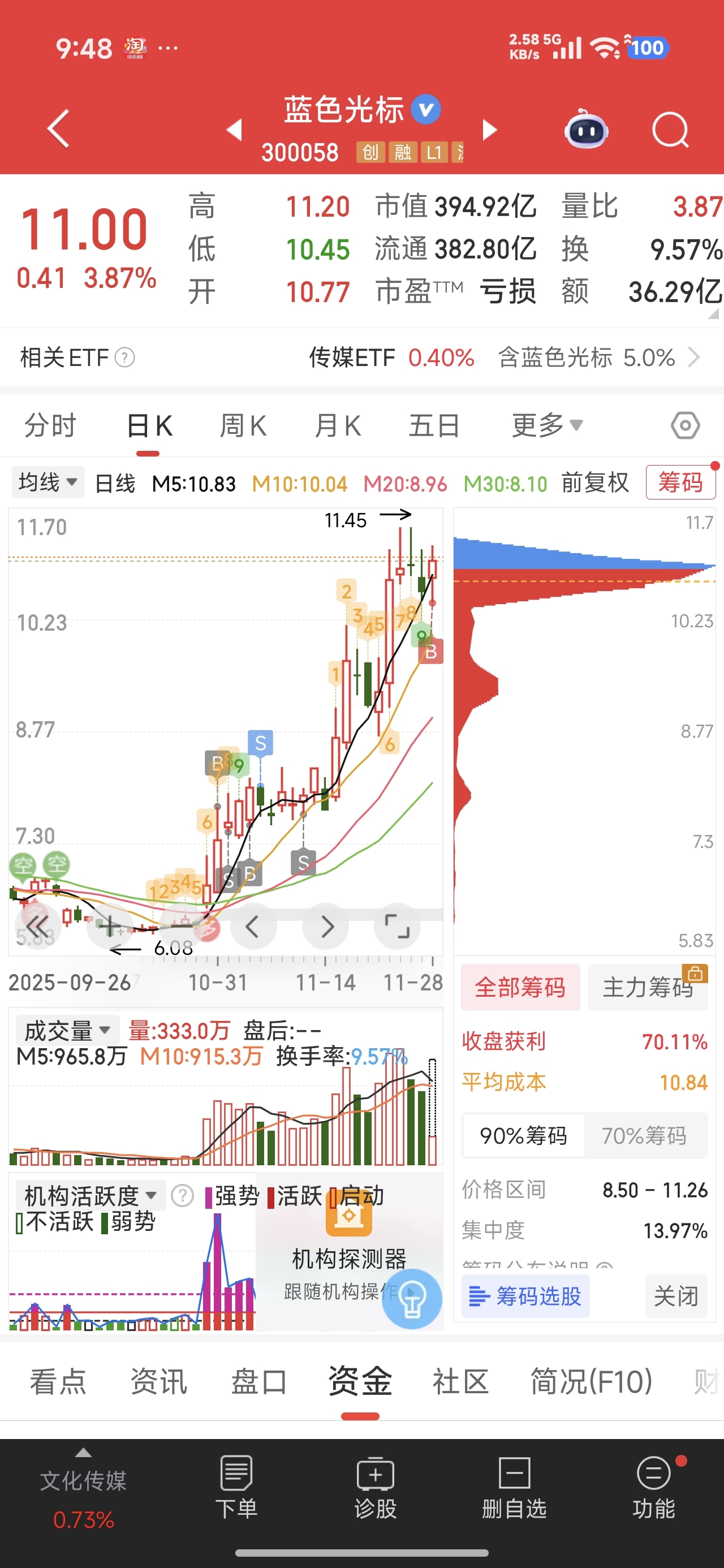 $蓝色光标(SZ300058)$ 今天主力敢拉我就敢进,今天又买了蓝色,今天不涨周末发酵一下溢价概率不小
