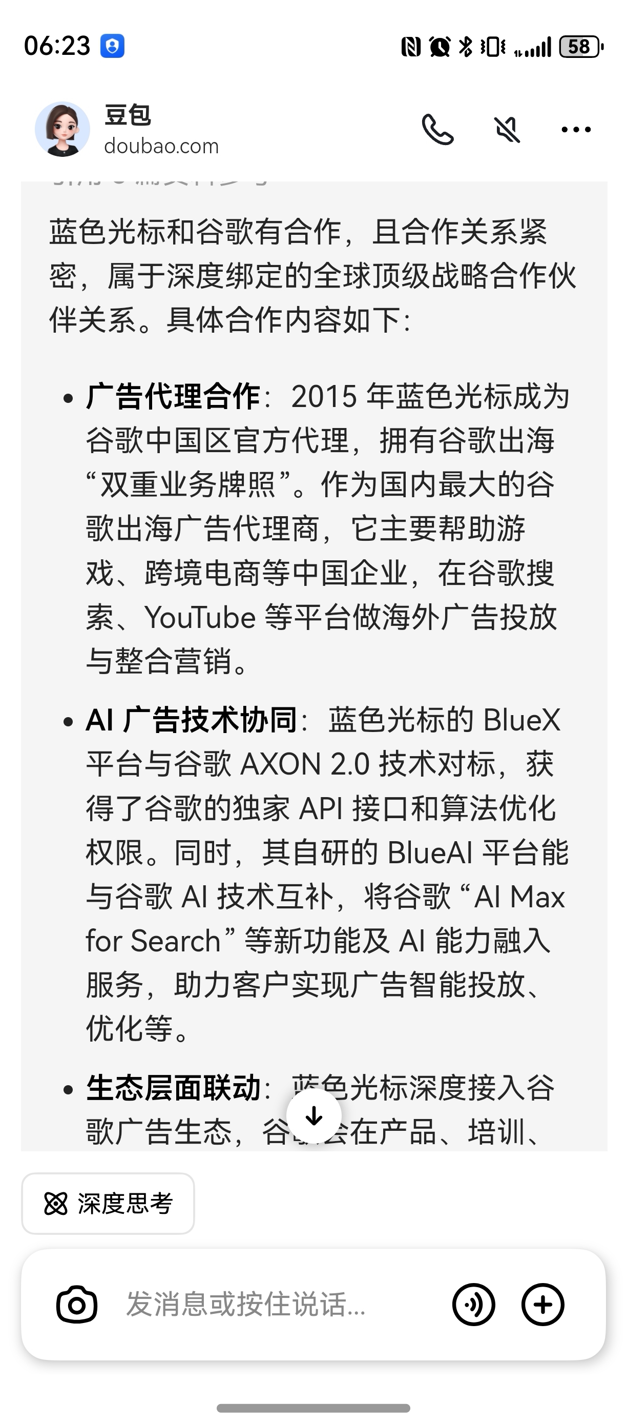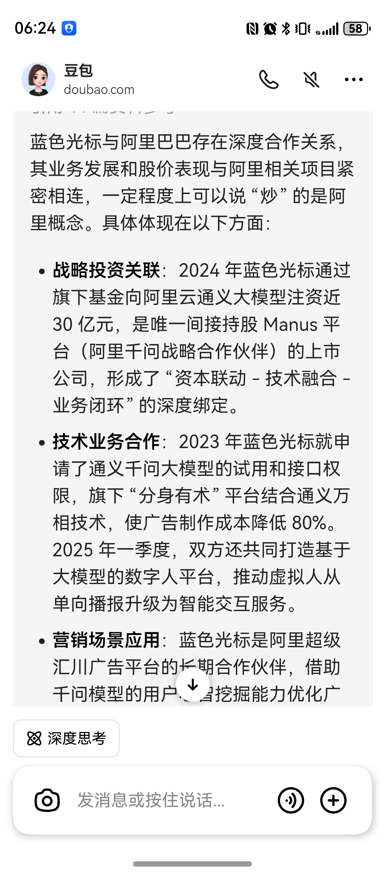 蓝色光标和谷歌和阿里巴巴都是深度合作关系,这就是他成为ai应用大中军的原因!拿好