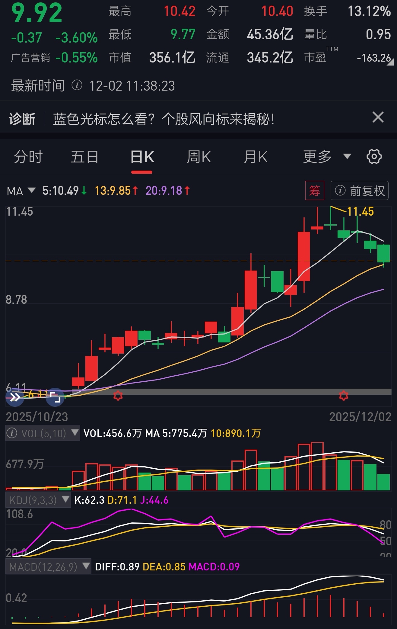 $蓝色光标(SZ300058)$ 机构就是喜欢这么标准的踩这根线,今天上手问题不大。