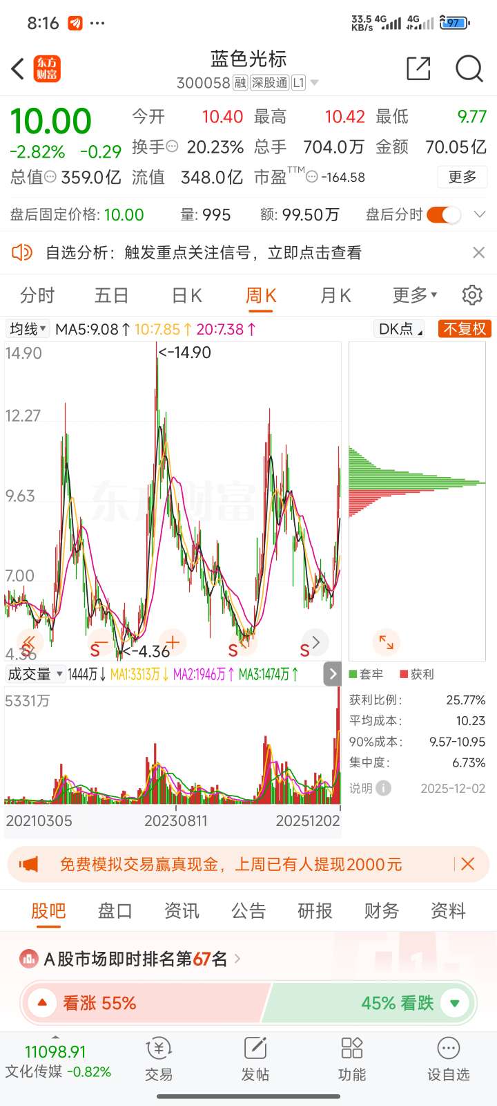 $蓝色光标(SZ300058)$ 看周线需要跌到4-5元建仓!