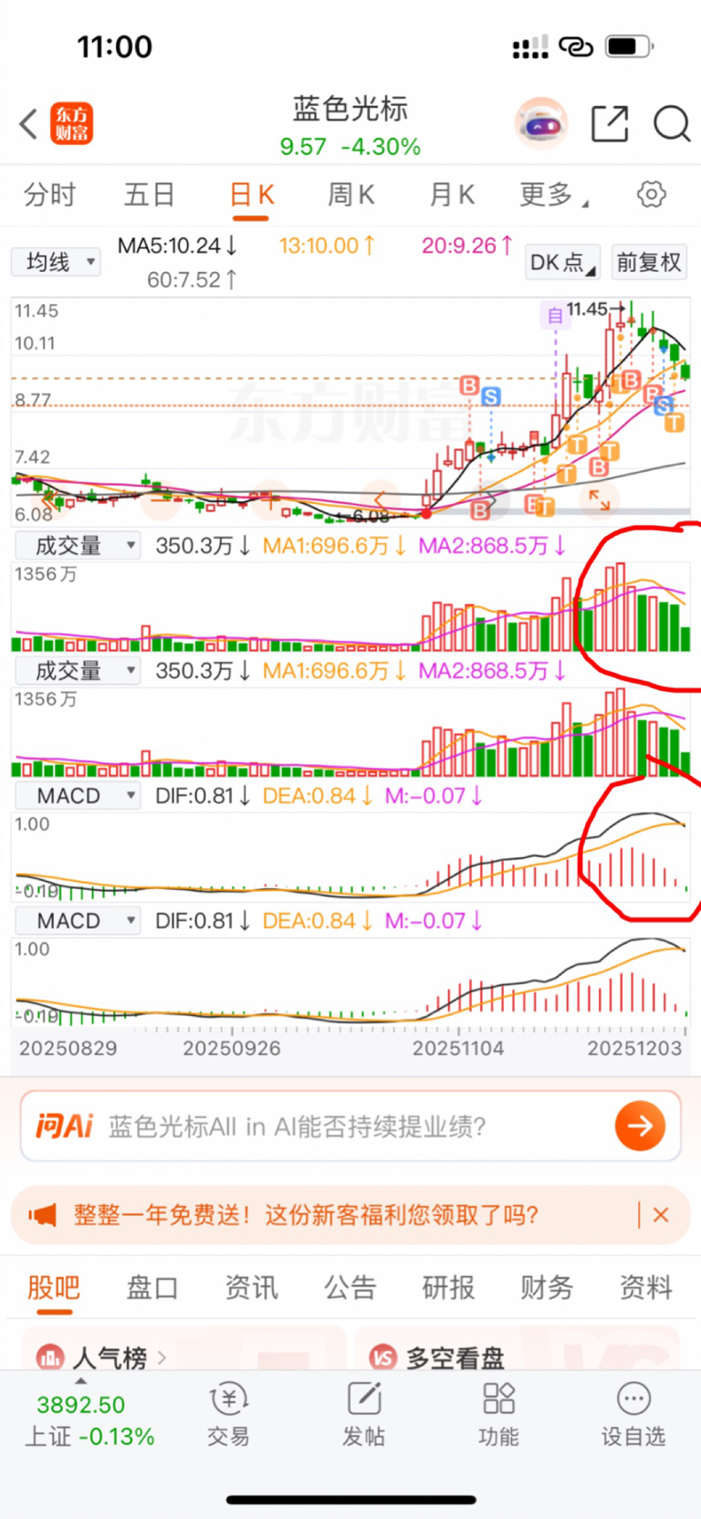 $蓝色光标(SZ300058)$ 双死叉了哦