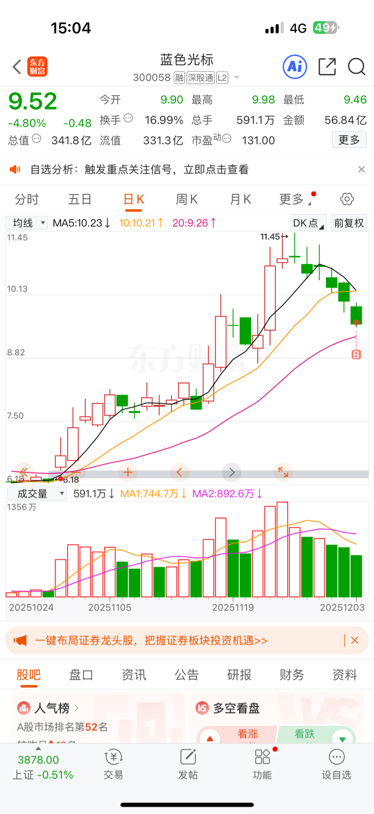 $蓝色光标(SZ300058)$ 买了十万。明天能吃肉吗兄弟们