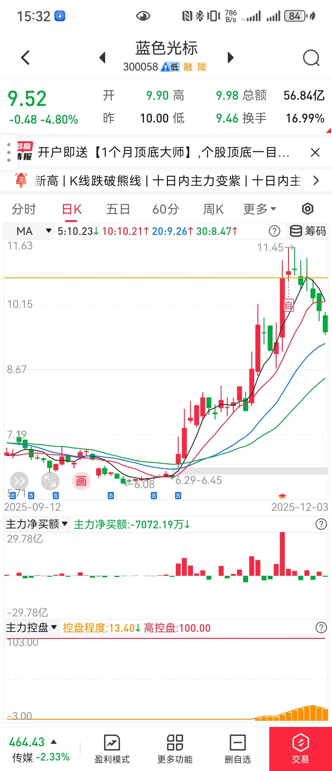$蓝色光标(SZ300058)$ 害怕什么。。。主力都没有跑掉。。。一直打压而已。