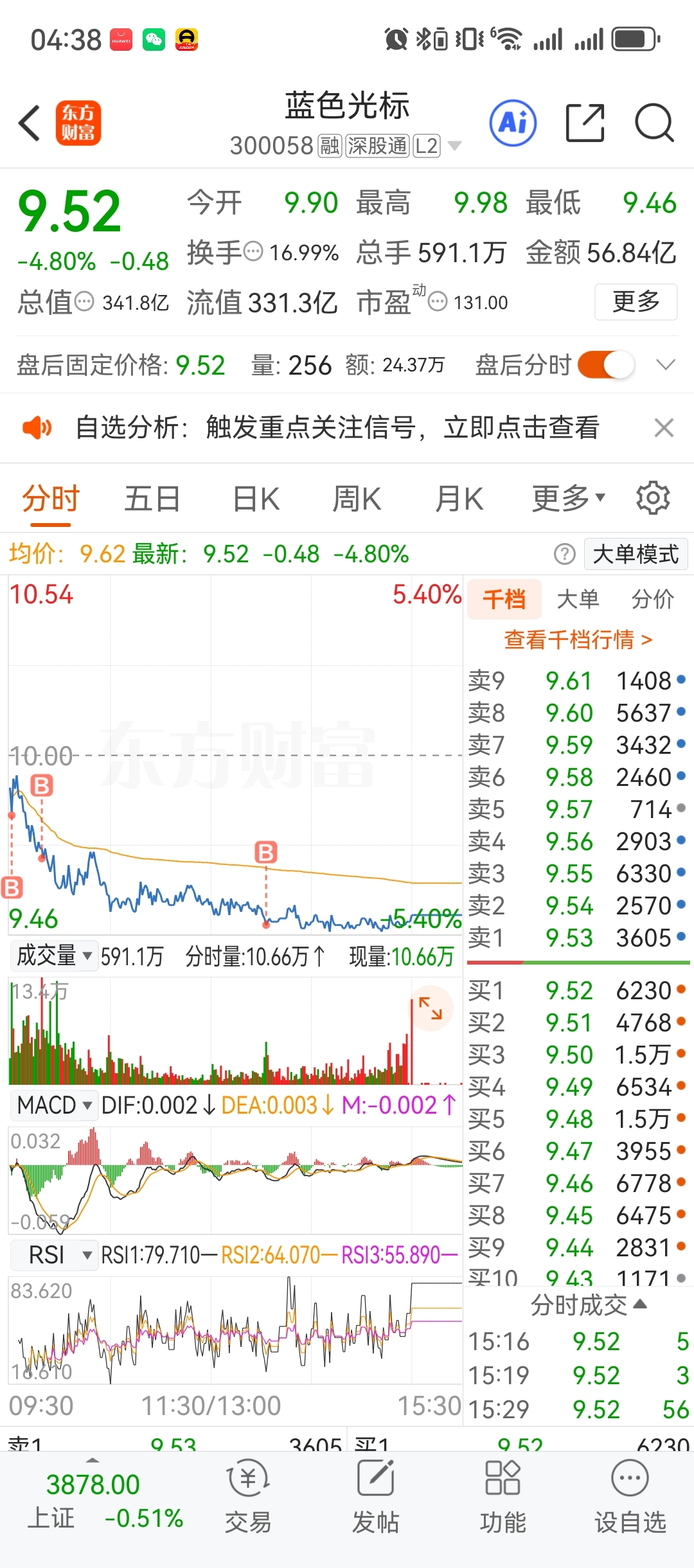 $蓝色光标(SZ300058)$ 今天加了两百手,明天再下来一些,让我打满!看好你
