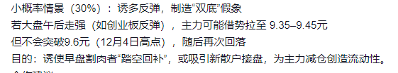 上午的预测基本正确,原本是想主力击穿9元造成恐慌加速吸筹,但是收盘9.23,可能受大盘午后反弹带动,主力临时改变策略,转为“诱多”。下周初将大概率高开低走,形成“假双底”。毕竟底部缩量红十字的图形都做出来了,不割一波技术党说不过去。最后祝大家周末愉快