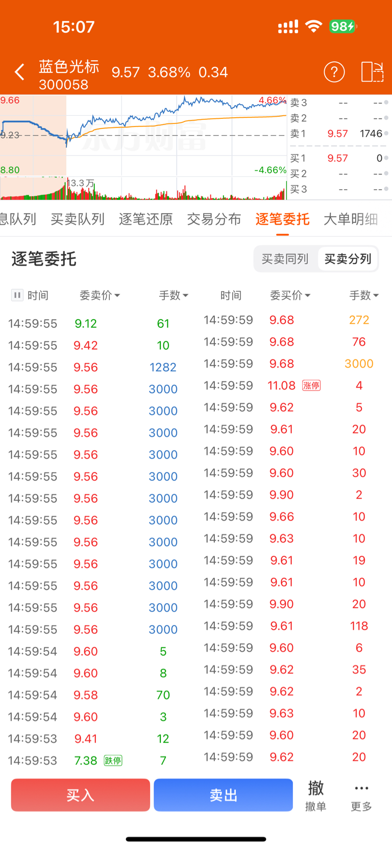 $蓝色光标(SZ300058)$ 尾盘竞价最后都这些3000手挂出来,前几天都是向上挂,第二天早盘都是砸盘,今天是砸的,反而会好事