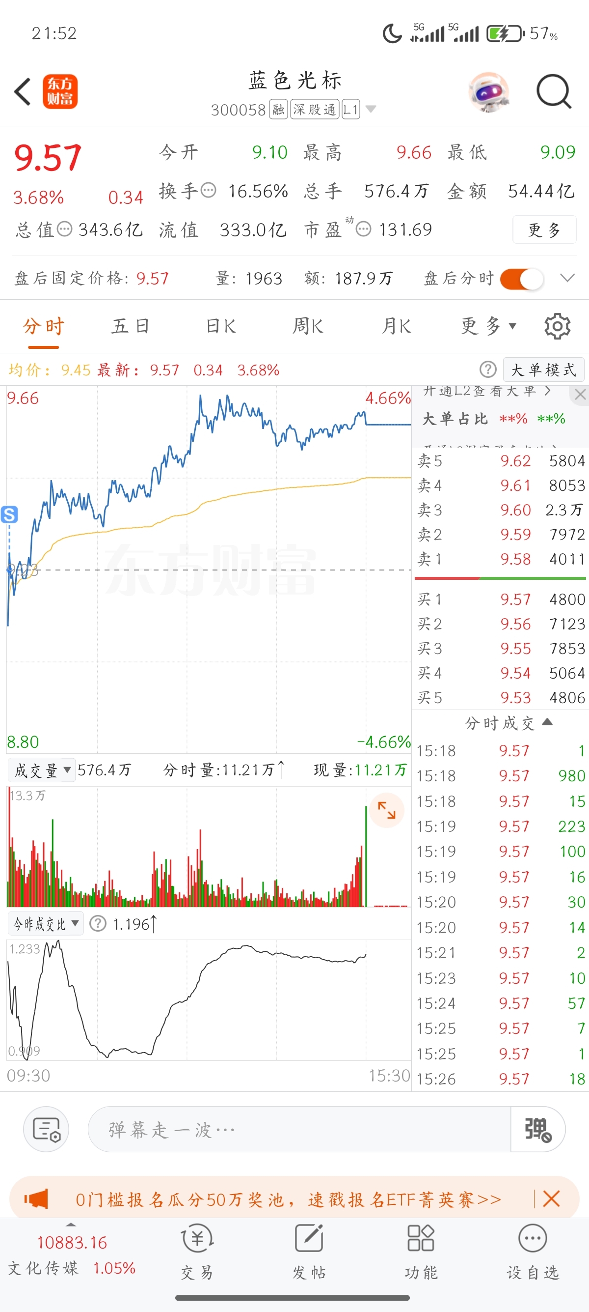 $蓝色光标(SZ300058)$ 没管住手。开盘就把昨天低买的给的卖了,想做t的,结果担保卖的,钱现在都没到账,以后不融了,玩不会。