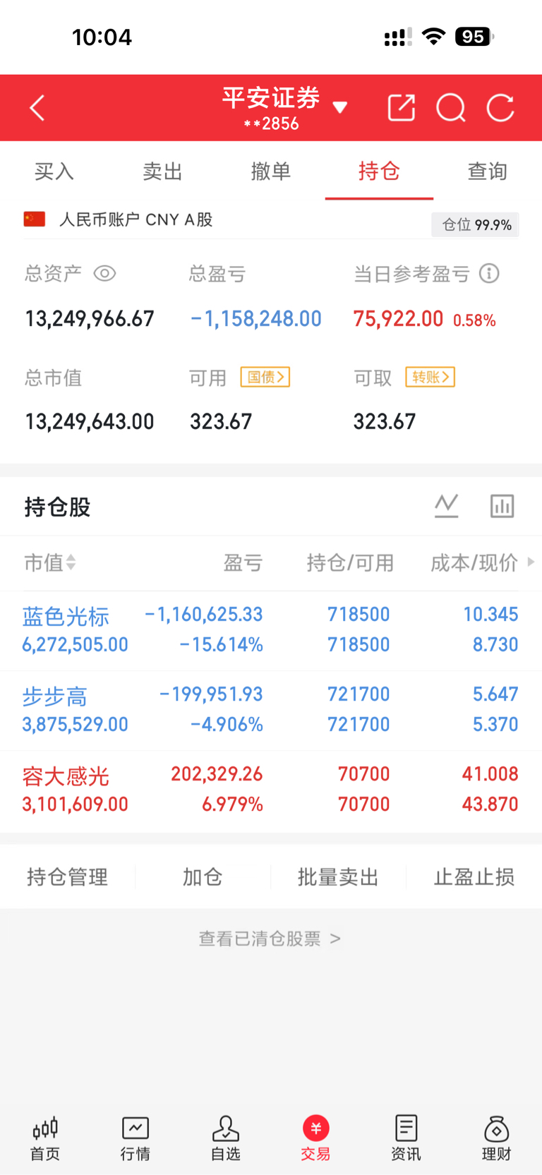 今天是12月15号,实盘战况267天, $蓝色光标(SZ300058)$ 继续 拿好等待继续反包目前亏的裤衩都绿了,$步步高(SZ002251)$ 可以加仓, $容大感光(SZ300576)$ 继续拿好 ,今天红,等待继续升温。#社区牛人计划#