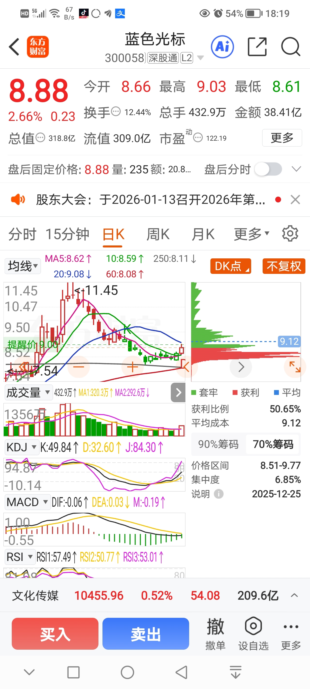 $蓝色光标(SZ300058)$ 能站稳8.74可以进来接盘啦,,想进的补仓的明天可考虑一下,,供参考