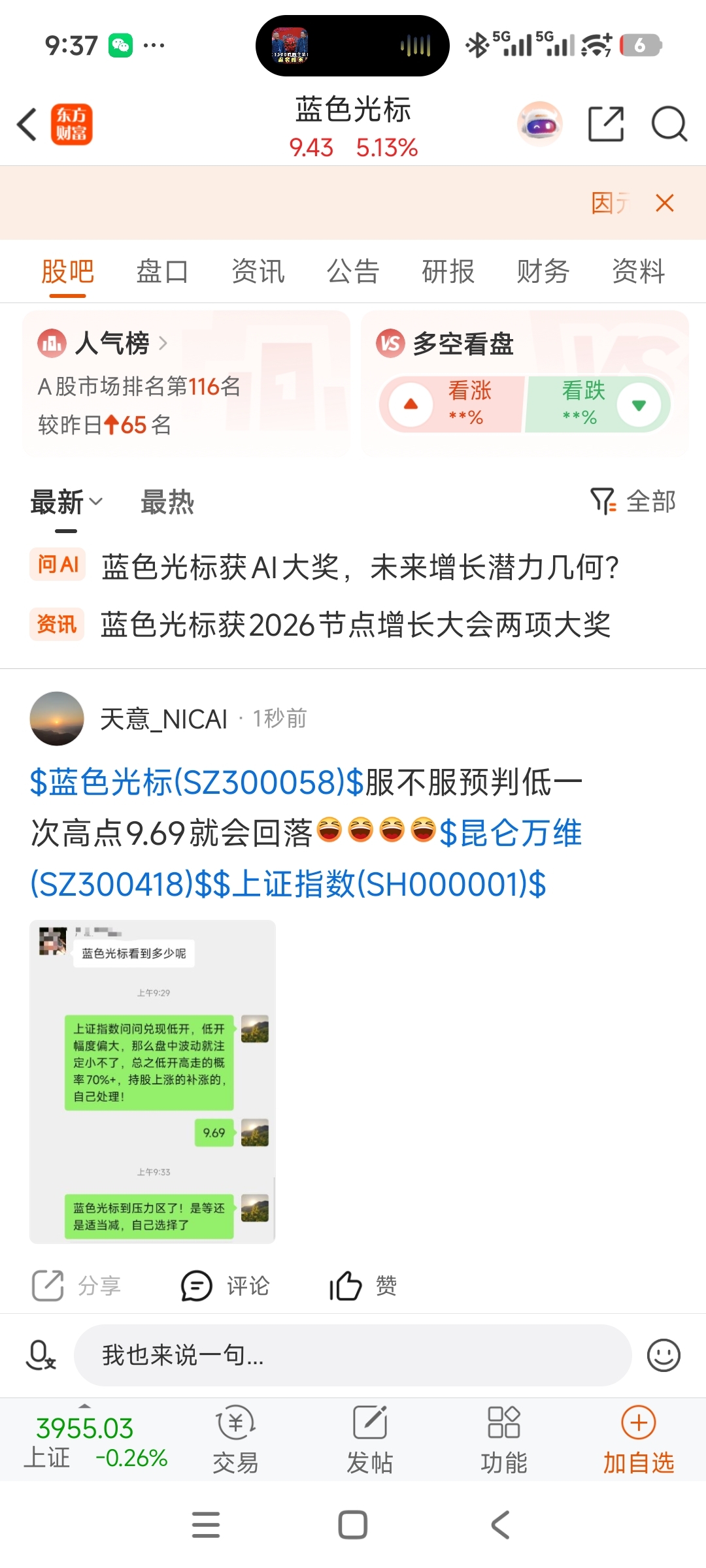 $蓝色光标(SZ300058)$ 服不服预判低一次高点9.69就会回落