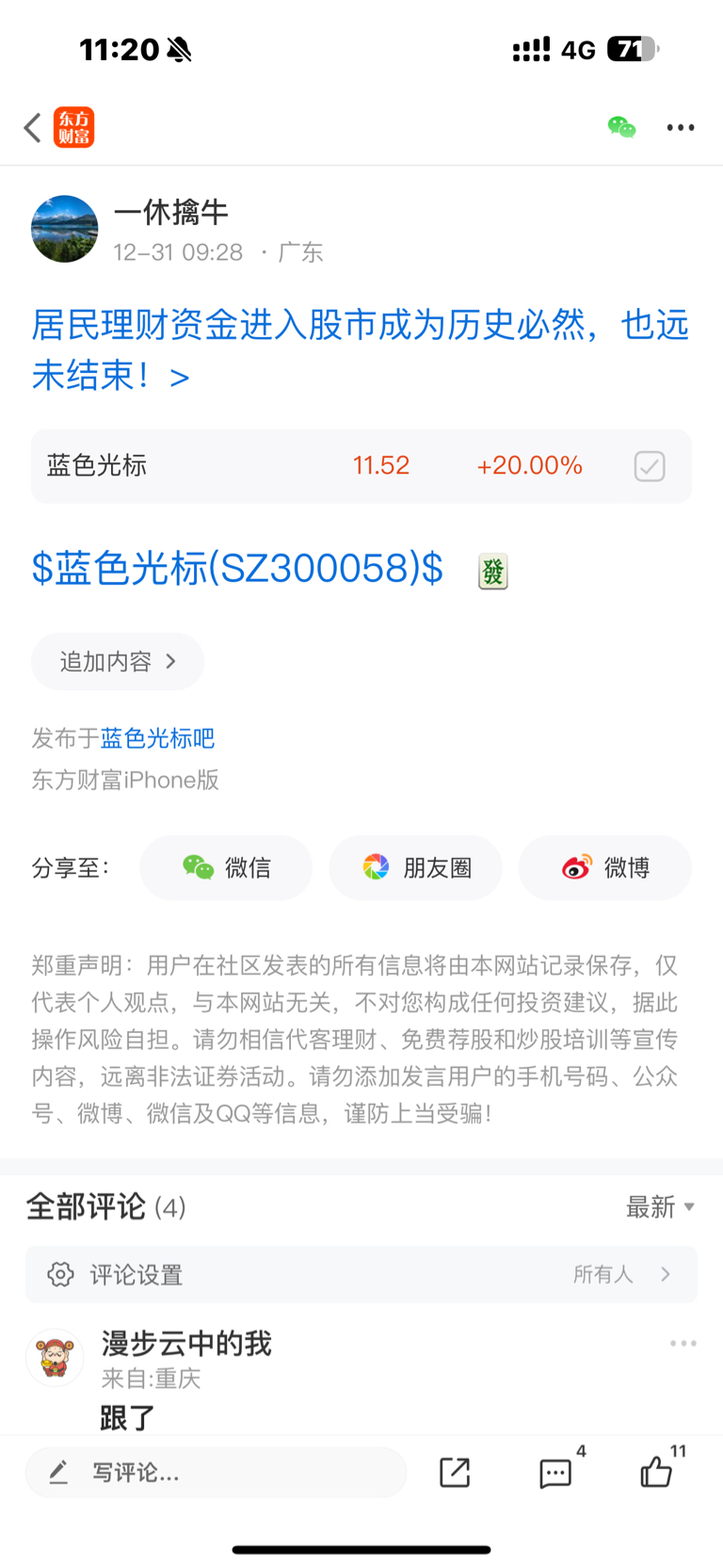 温馨提示: 1.根据《证券法》规定,禁止编造、传播虚假信息或者误导性信息,扰乱证券市场;2.用户在本社区发表的所有资料、言论等仅代表个人观点,与本网站立场无关,不对您构成任何投资建议。用户应基于自己的独立判断,自行决定证券投资并承担相应风险。《东方财富社区管理规定》