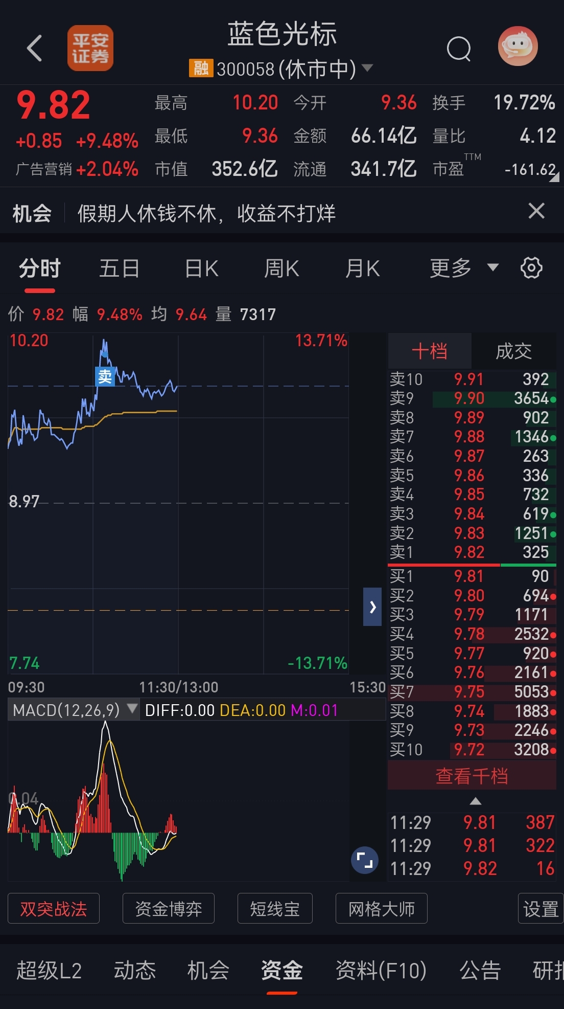 昨天10块卖的买入了端侧AI结果今天蓝光直接20个点