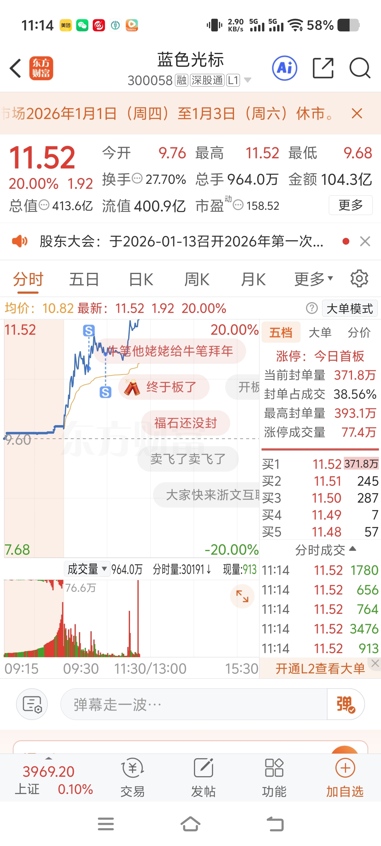$蓝色光标(SZ300058)$ 唉知道他要涨停啊为什么没那么耐心