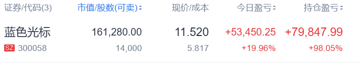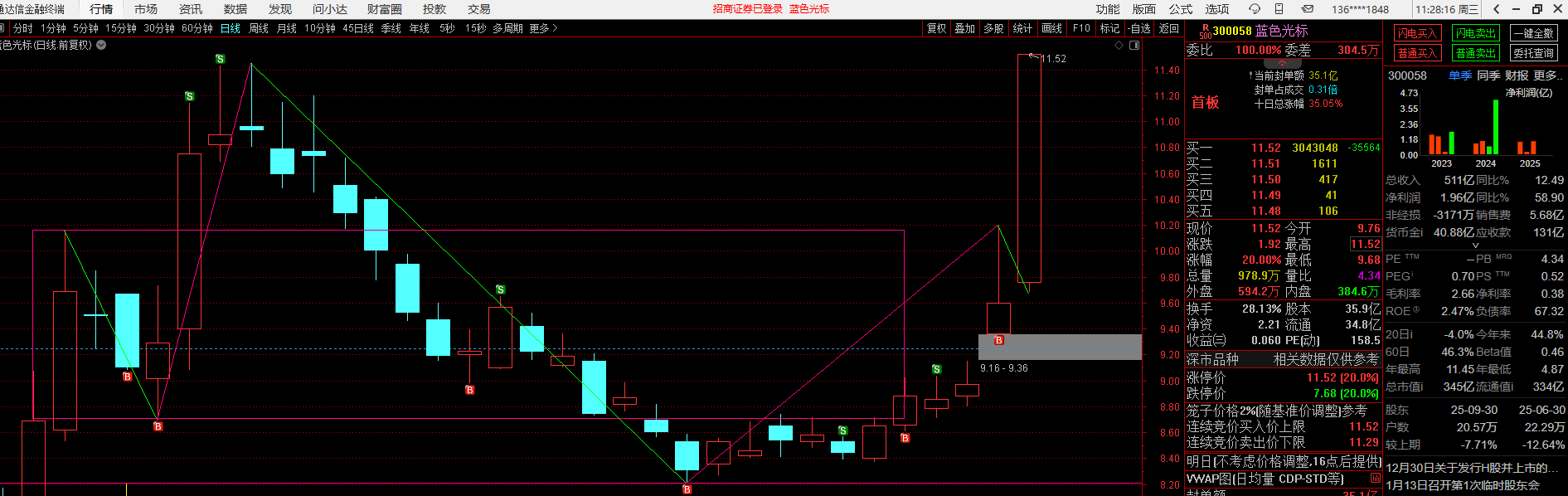 蓝色光标(彪哥),终于等到你的龙回头.不枉费每天对你的关注,持有的30天.