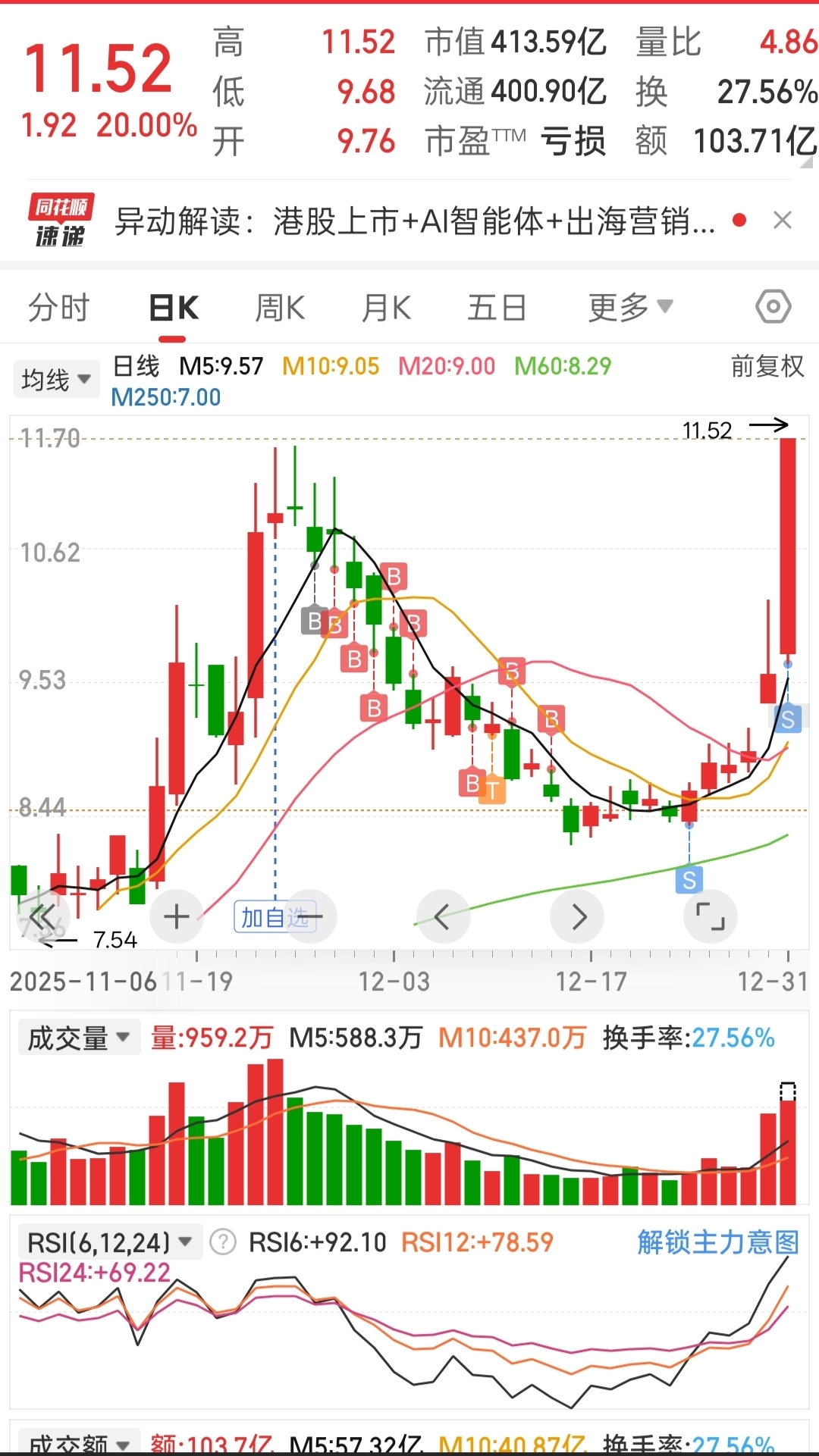 $蓝色光标(SZ300058)$ 硬扛了全部回撤