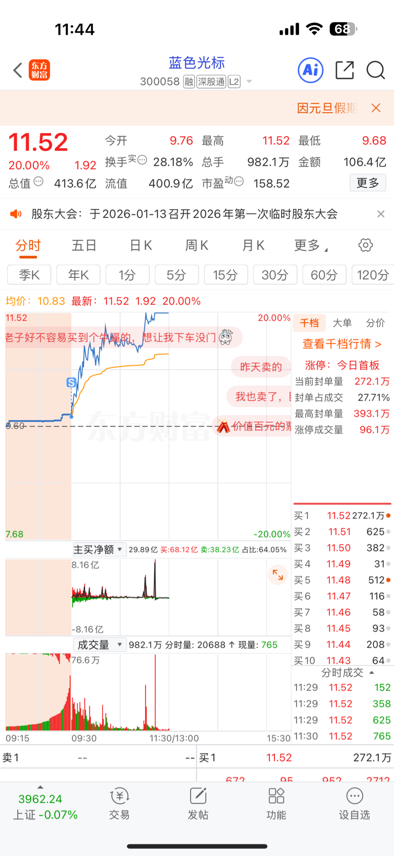 温馨提示: 1.根据《证券法》规定,禁止编造、传播虚假信息或者误导性信息,扰乱证券市场;2.用户在本社区发表的所有资料、言论等仅代表个人观点,与本网站立场无关,不对您构成任何投资建议。用户应基于自己的独立判断,自行决定证券投资并承担相应风险。《东方财富社区管理规定》