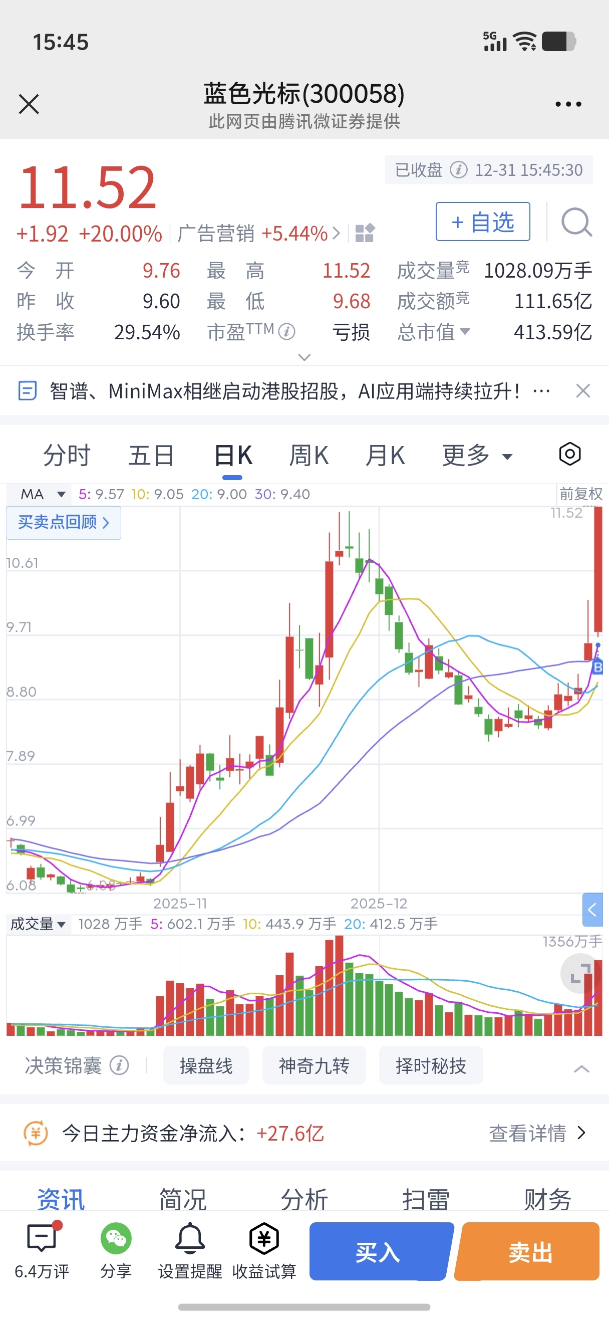 $蓝色光标(SZ300058)$ 打板进的