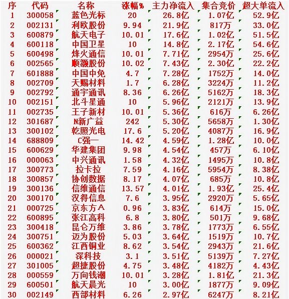 12月31日尾盘31分钟,主力资金“大幅抢筹的”30名单一览!
