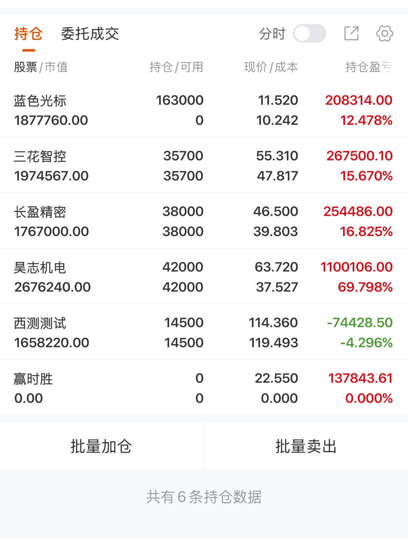 长盈精密午后稳步上探,西测测试跟随板块修复,继续持有,赢时胜不及预期止盈离场