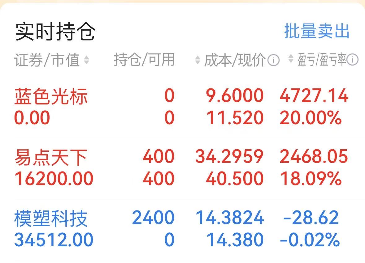 $蓝色光标(SZ300058)$ $模塑科技社区(000700)$ 我左手蓝色光标,右手易点天下,还有个模塑科技!
