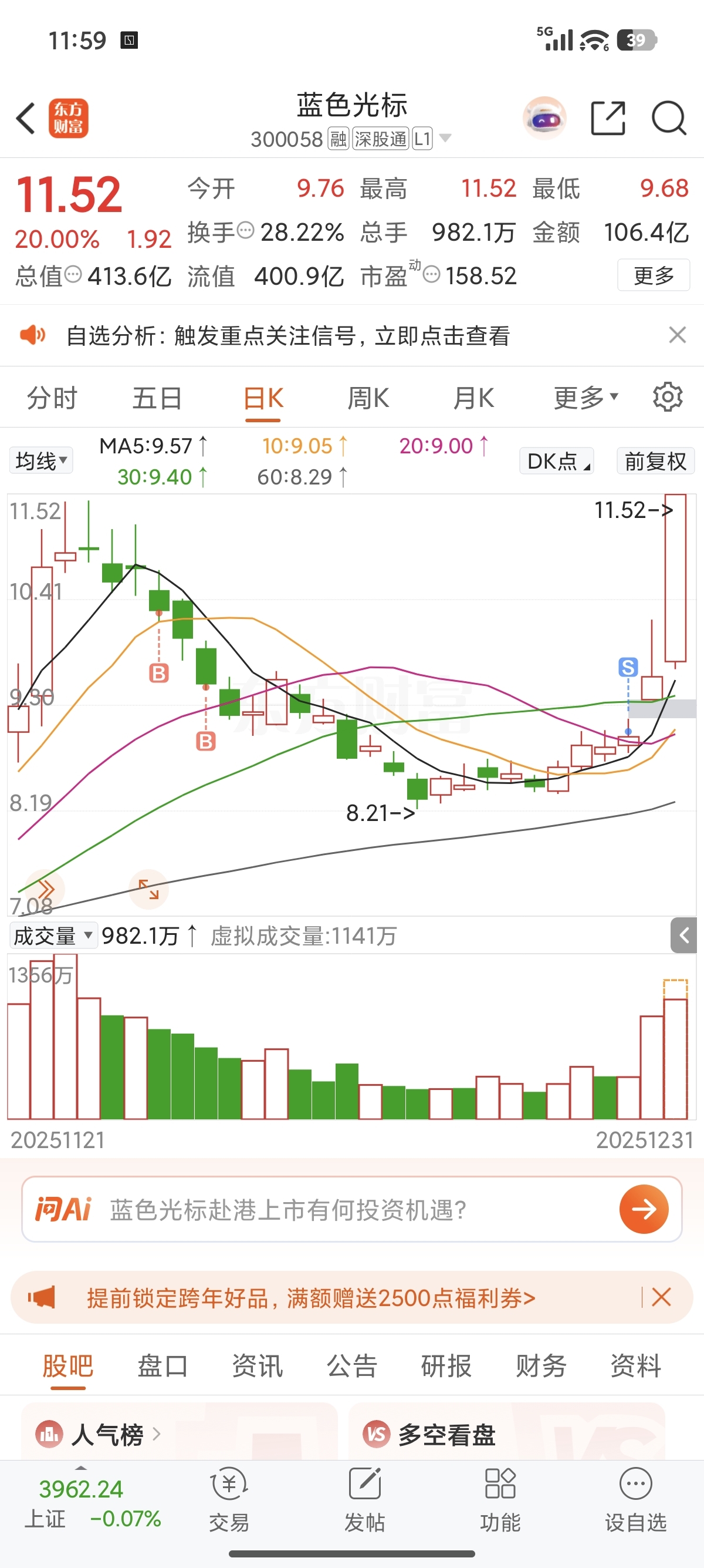 $蓝色光标(SZ300058)$ 大腿都拍肿了,脑壳昏了,我是今年最大的韭菜!