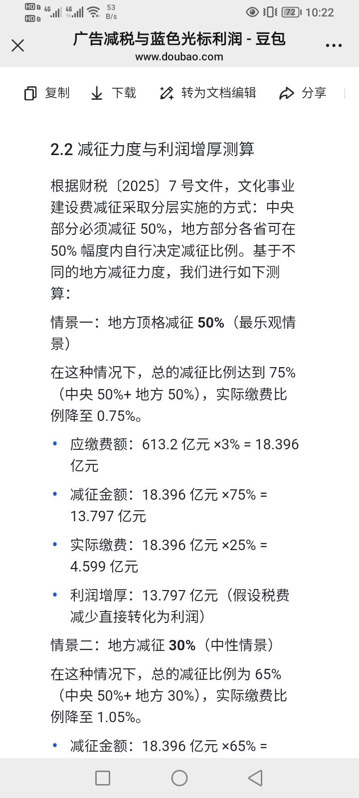 $蓝色光标(SZ300058)$ 昨天许多人在想为什么ai炒作丧彪,今天告诉你们逻辑,丧彪的营收在这里面最大的,减税带来的利润也是最多的,业绩预期太大了