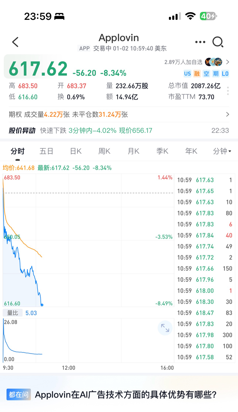 美股Ai广告应用大跌?希望大A周一撑住咯
