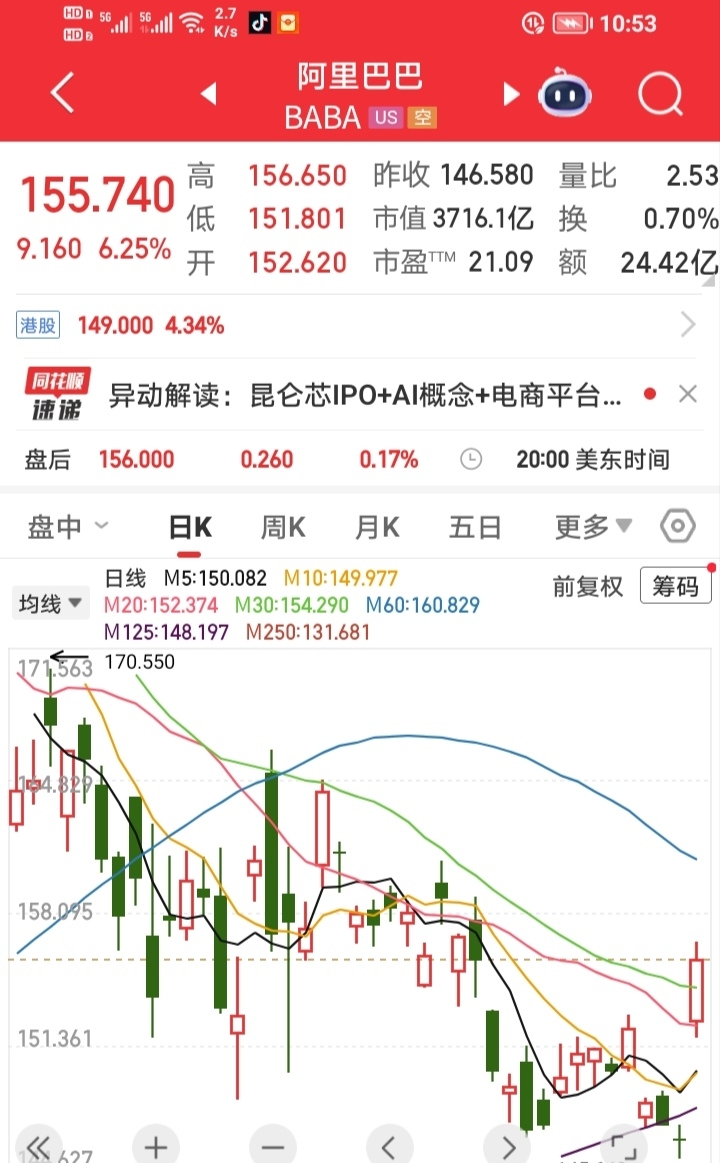 2026年1月2日纳斯达克阿里巴巴上涨6%,核心是AI与云业务高增+美图合作深化+板块与资金共振,叠加估值修复驱动。