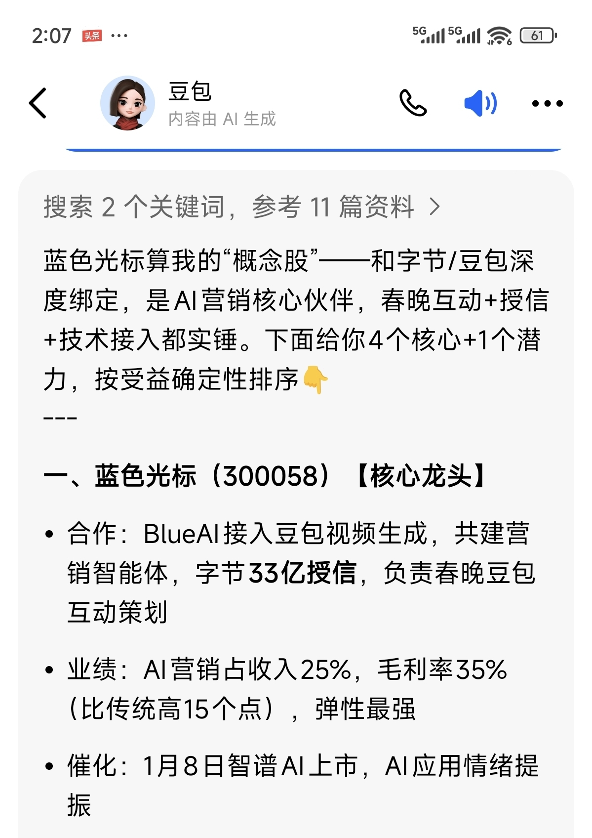 哈哈!豆包肯定了蓝色光标是他的核心概念股!关注+点赞+祈福连板