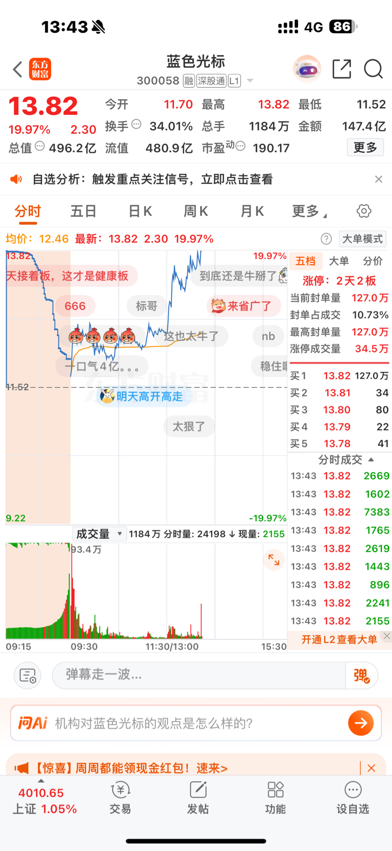 温馨提示: 1.根据《证券法》规定,禁止编造、传播虚假信息或者误导性信息,扰乱证券市场;2.用户在本社区发表的所有资料、言论等仅代表个人观点,与本网站立场无关,不对您构成任何投资建议。用户应基于自己的独立判断,自行决定证券投资并承担相应风险。《东方财富社区管理规定》