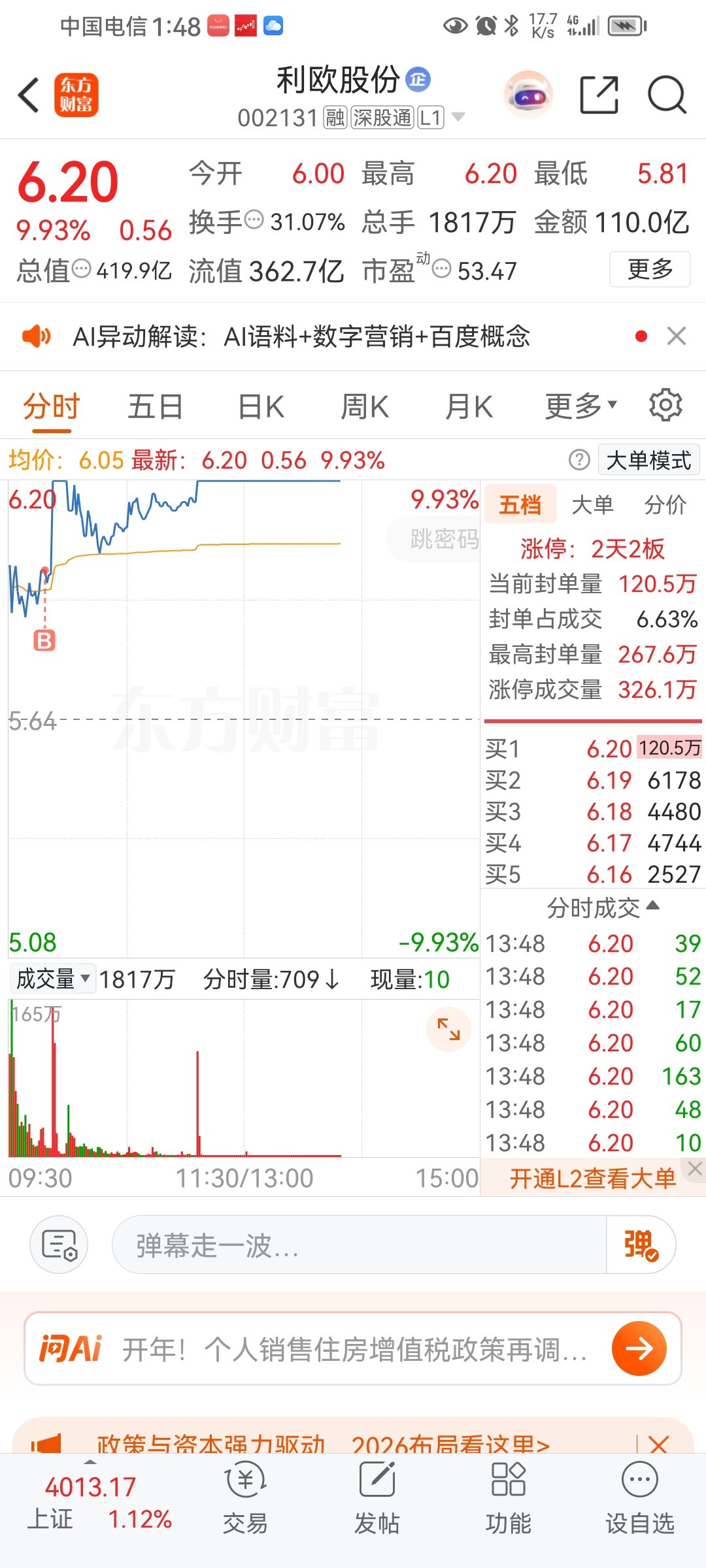 今天是我的生日,开门红真开心!感谢东方财富,感谢蓝色光标的大红包~今日建仓利欧股