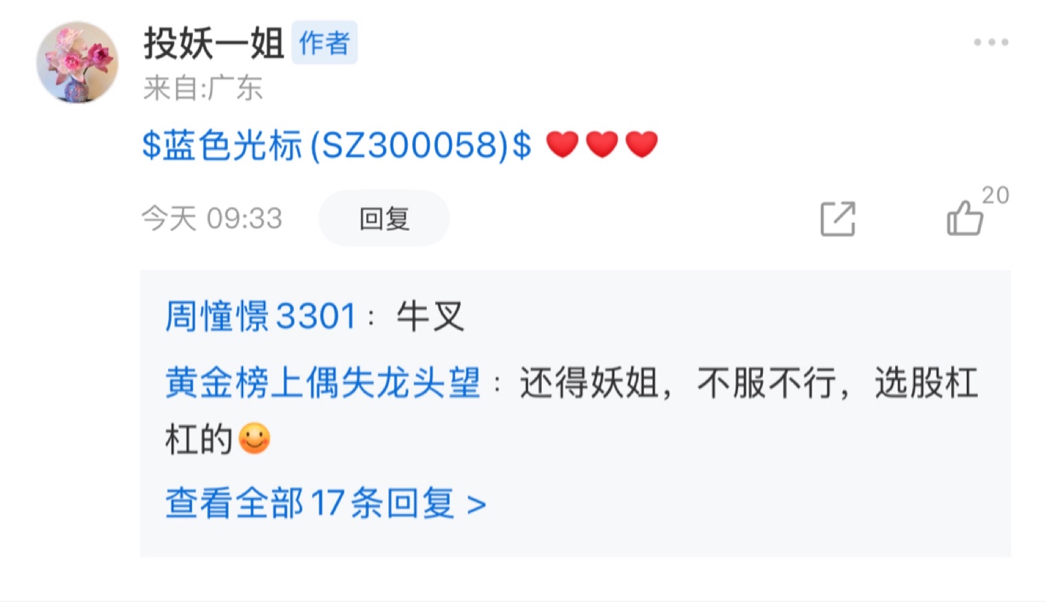 郑重声明:用户在财富号/股吧/博客等社区发表的所有信息(包括但不限于文字、视频、音频、数据及图表)仅代表个人观点,与本网站立场无关,不对您构成任何投资建议,据此操作风险自担。请勿相信代客理财、免费荐股和炒股培训等宣传内容,远离非法证券活动。请勿添加发言用户的手机号码、公众号、微博、微信及QQ等信息,谨防上当受骗!