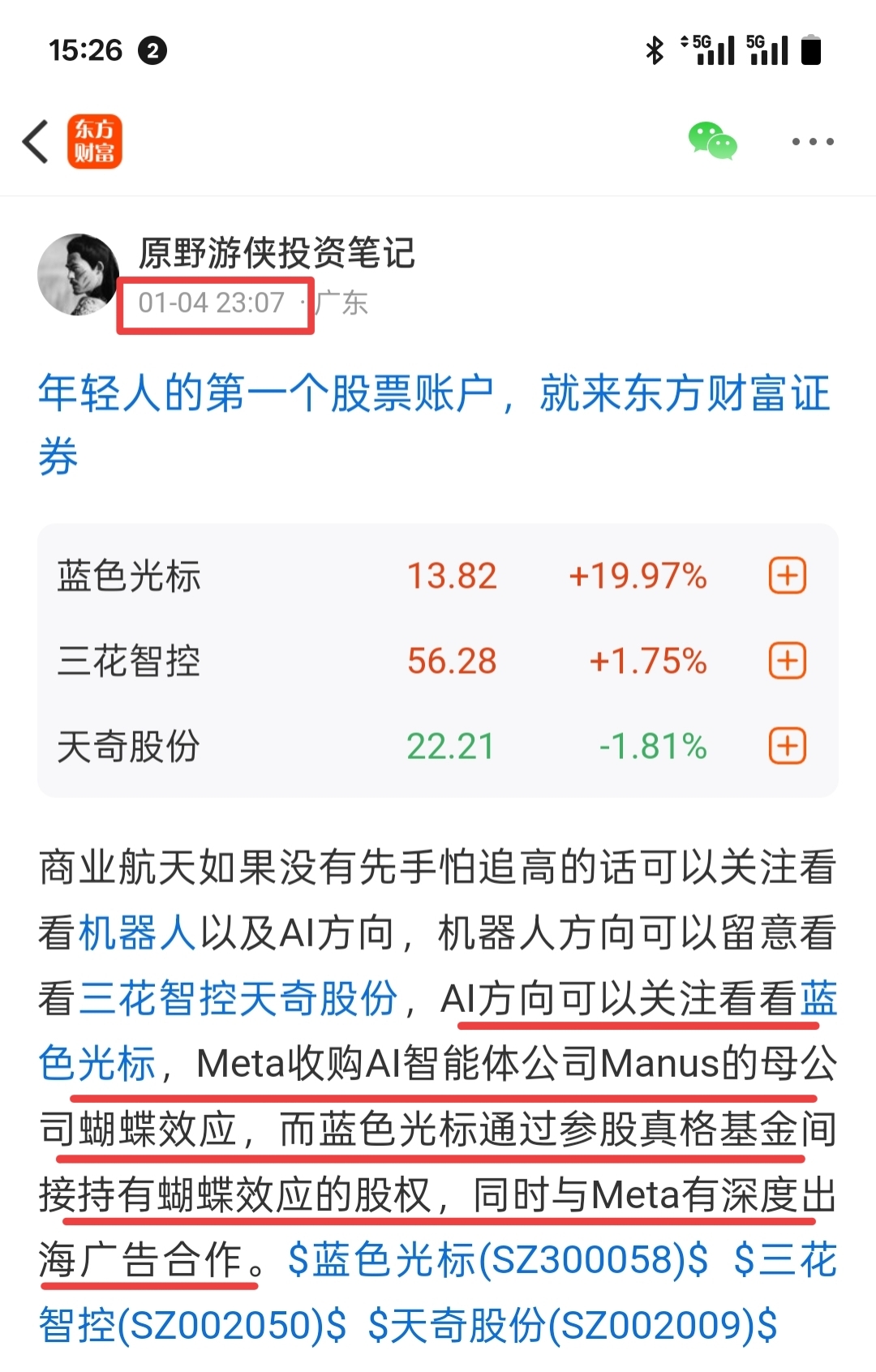 2026年的第一个交易日迎来开门红,新开仓的蓝色光标利欧股份均在盘中涨停,蓝色光