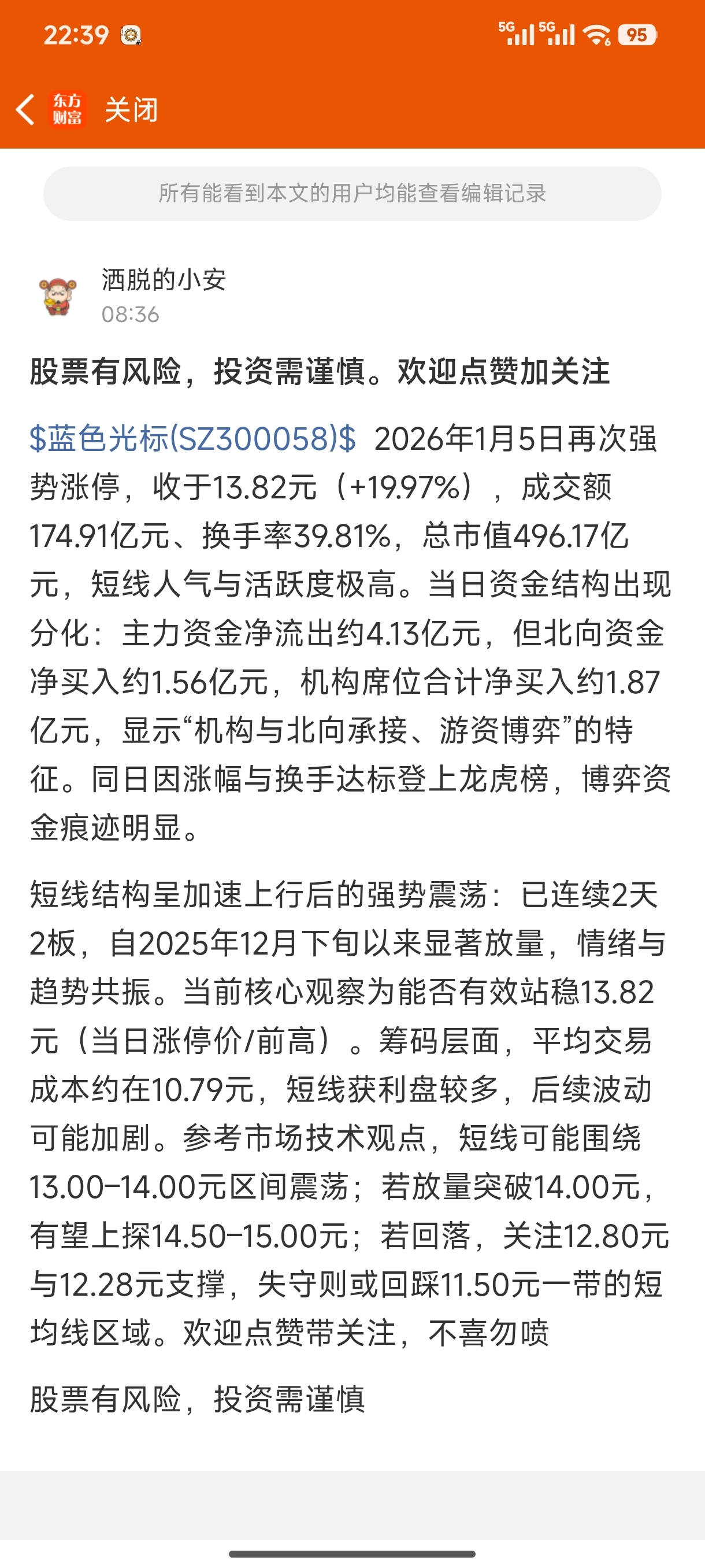 温馨提示: 1.根据《证券法》规定,禁止编造、传播虚假信息或者误导性信息,扰乱证券市场;2.用户在本社区发表的所有资料、言论等仅代表个人观点,与本网站立场无关,不对您构成任何投资建议。用户应基于自己的独立判断,自行决定证券投资并承担相应风险。《东方财富社区管理规定》
