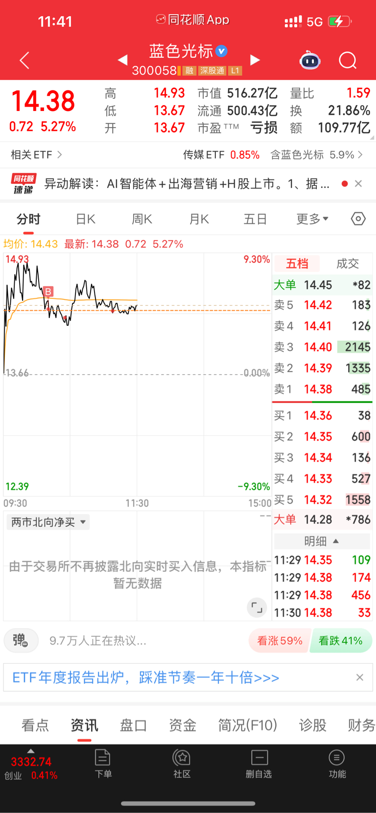 $蓝色光标(SZ300058)$ 追高了,希望不要埋我