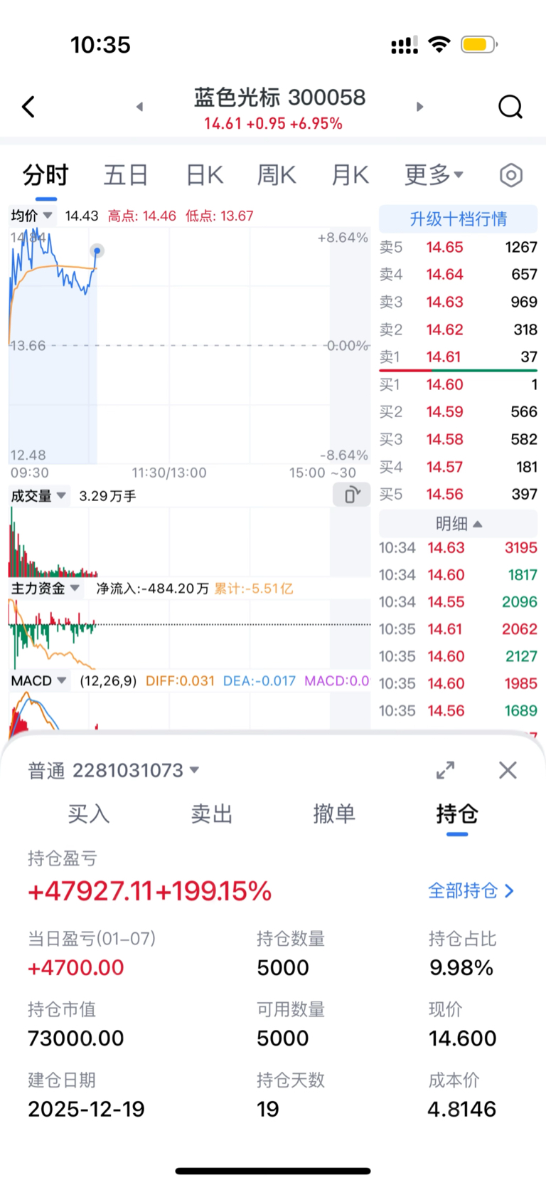 $蓝色光标(SZ300058)$ 光标持仓半月,盈利200%