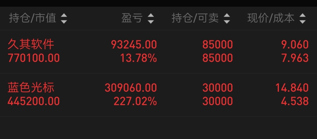 蓝色光标再减100手,守住利润…久其软件继续持股…
