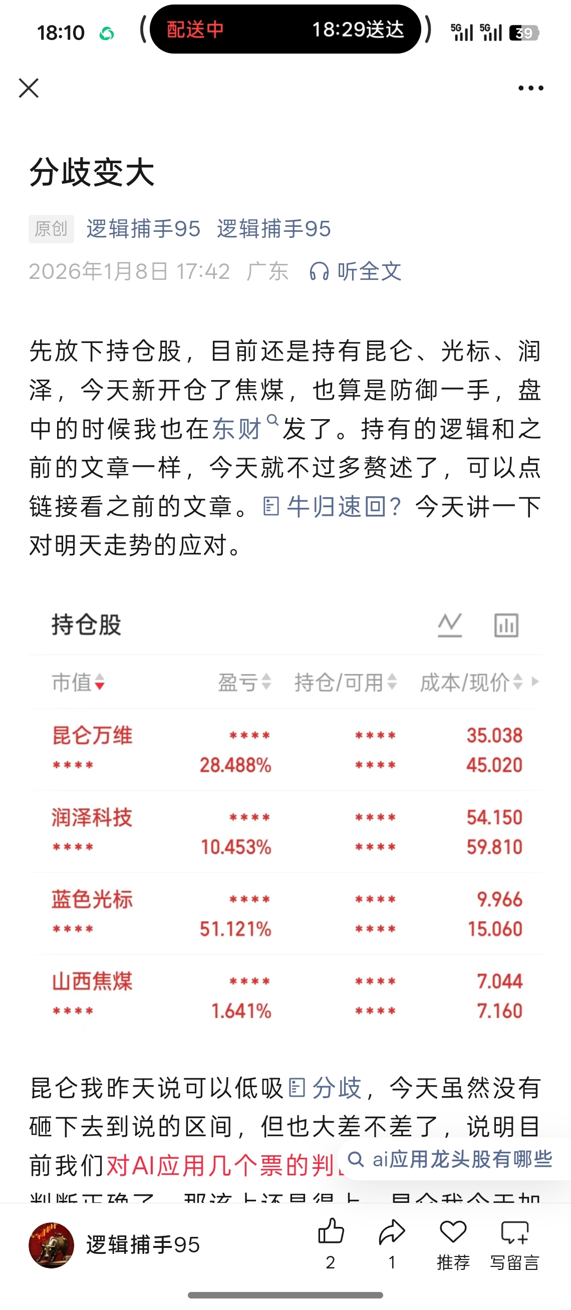 温馨提示: 1.根据《证券法》规定,禁止编造、传播虚假信息或者误导性信息,扰乱证券市场;2.用户在本社区发表的所有资料、言论等仅代表个人观点,与本网站立场无关,不对您构成任何投资建议。用户应基于自己的独立判断,自行决定证券投资并承担相应风险。《东方财富社区管理规定》