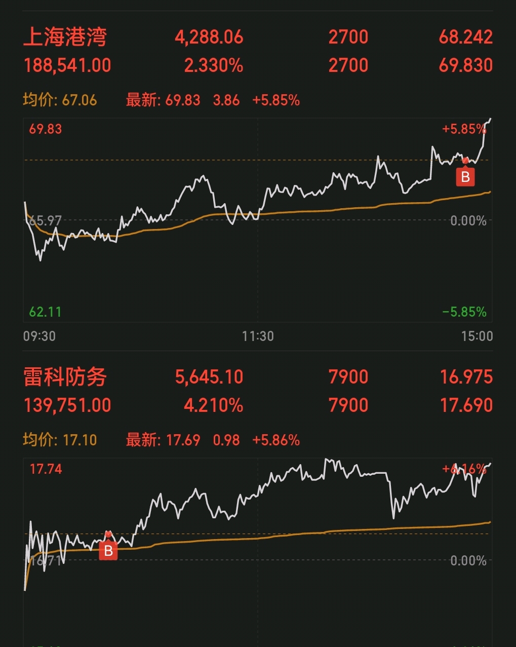 同时瞄准新方向,新开上海港湾、罗普斯金、$雷科防务(SZ002413)$ 三只标的,完成新一轮布局,静待后续走势发力。