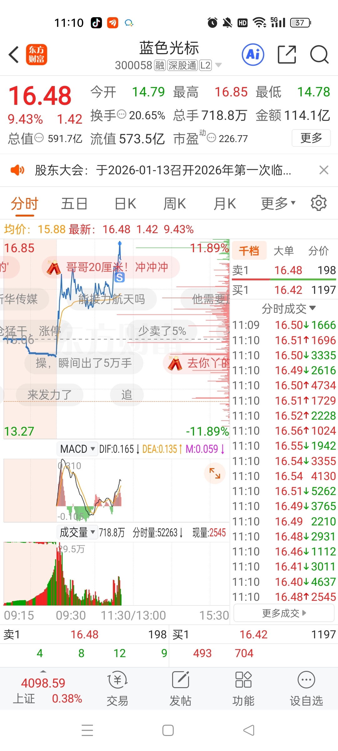 $蓝色光标(SZ300058)$ 下来再接,每天T一T,真爽
